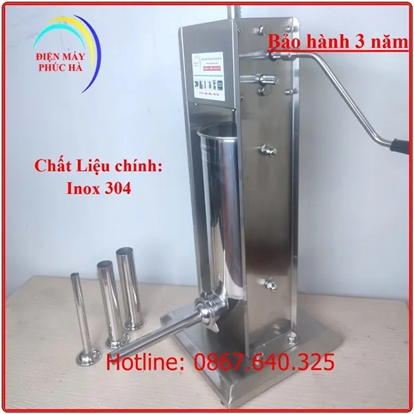 Máy Nhồi Xúc Xích 5 lít inox 304 là sản phẩm được nhiều anh chị làm xúc xích ưa chuộng bởi chất lượng tốt và giá thành hợp lý. Với thiết kế bền bỉ và tính năng vượt trội, máy đáp ứng nhu cầu sản xuất xúc xích tại nhà hoặc trong các cơ sở sản xuất nhỏ. Hãy cùng tìm hiểu chi tiết về sản phẩm này.